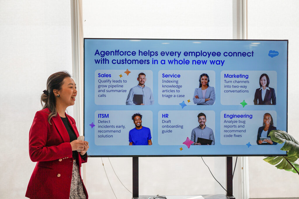 Không dừng lại ở những bài thuyết trình lý thuyết, sự kiện đã tạo ra một không gian công nghệ đúng nghĩa. Khách tham dự đã trực tiếp thao tác và chứng kiến sự phối hợp nhịp nhàng giữa các “ông lớn” trong hệ sinh thái Salesforce: